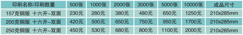 海报印刷价格表(157克铜版纸,价格不包含工艺制作费用,适用于宣传单、海报招贴、广告DM、价格表、节目单、门票、优惠券、菜单)